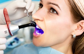 - Little to no downtime – After applying and shaping the material, we’ll use a special curing light to harden it. When you leave, you’ll be able to resume your normal activities and can eat and drink right away.